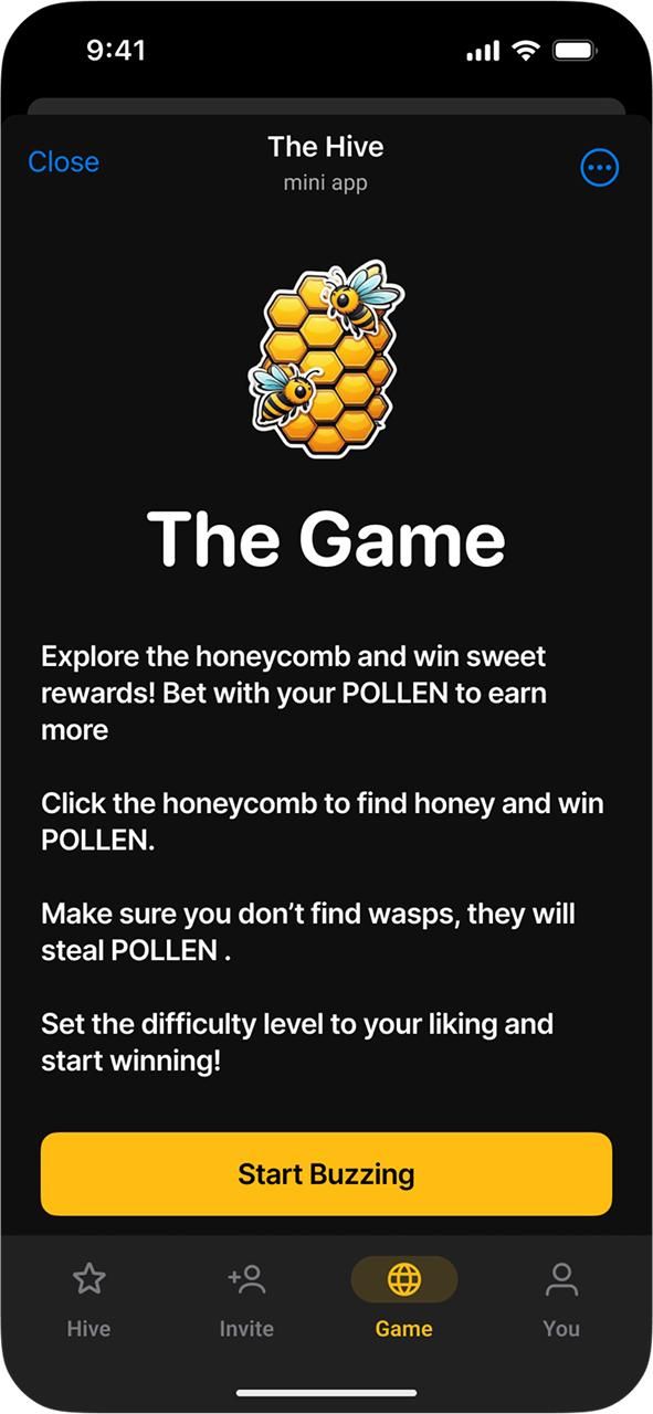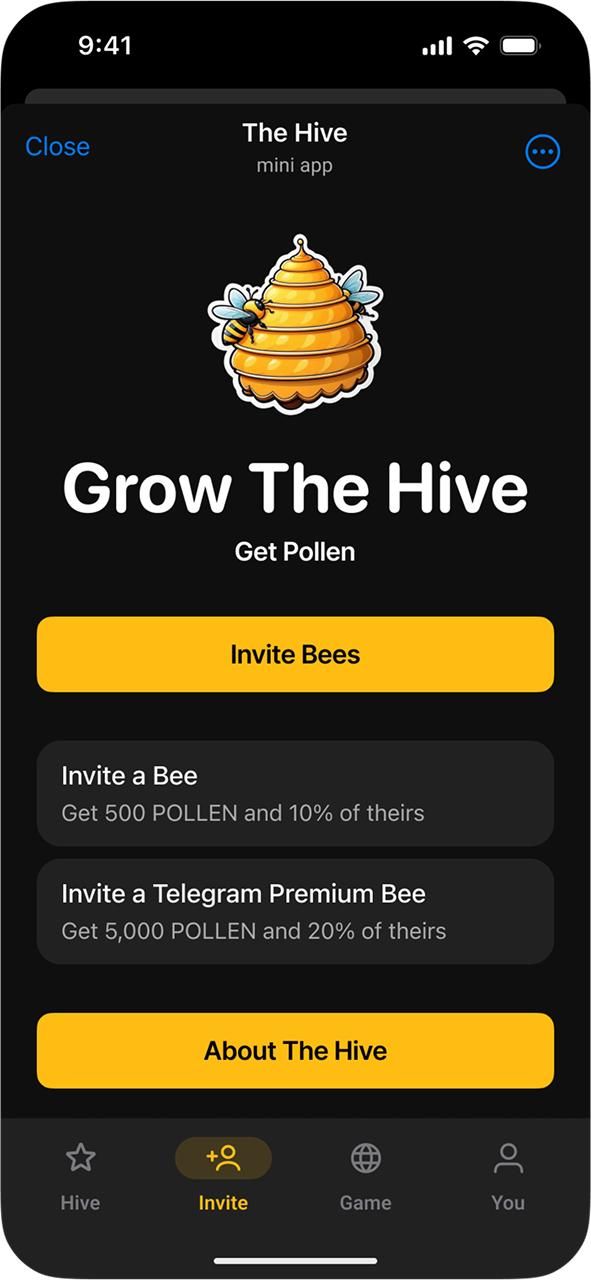 The Hive — это социально ориентированная платформа вознаграждений, где участие приносит вам больше. Приглашайте друзей, оставайтесь активными и собирайте награды, такие как пыльца и нектар, которые превращаются в потрясающие выигрыши. Благодаря эксклюзивным мероприятиям, постоянным бонусам и игровой системе вознаграждений The Hive отмечает значимое участие и связь. Создано для Telegram, поддерживается людьми — присоединяйтесь и начинайте зарабатывать.