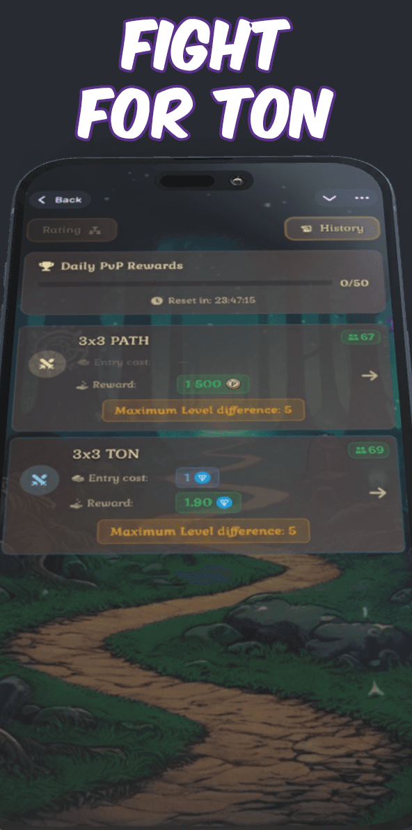 Сражайтесь за TON, а не только за славу. Улучшайте своих героев, доминируйте на PvP-арене и получайте реальные криптовалютные награды каждый час.