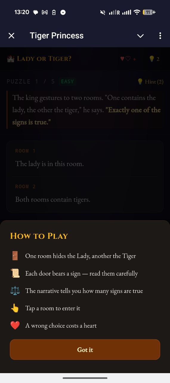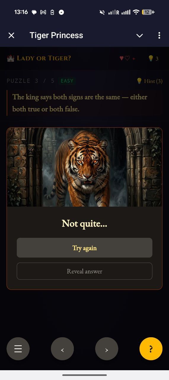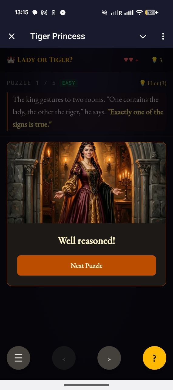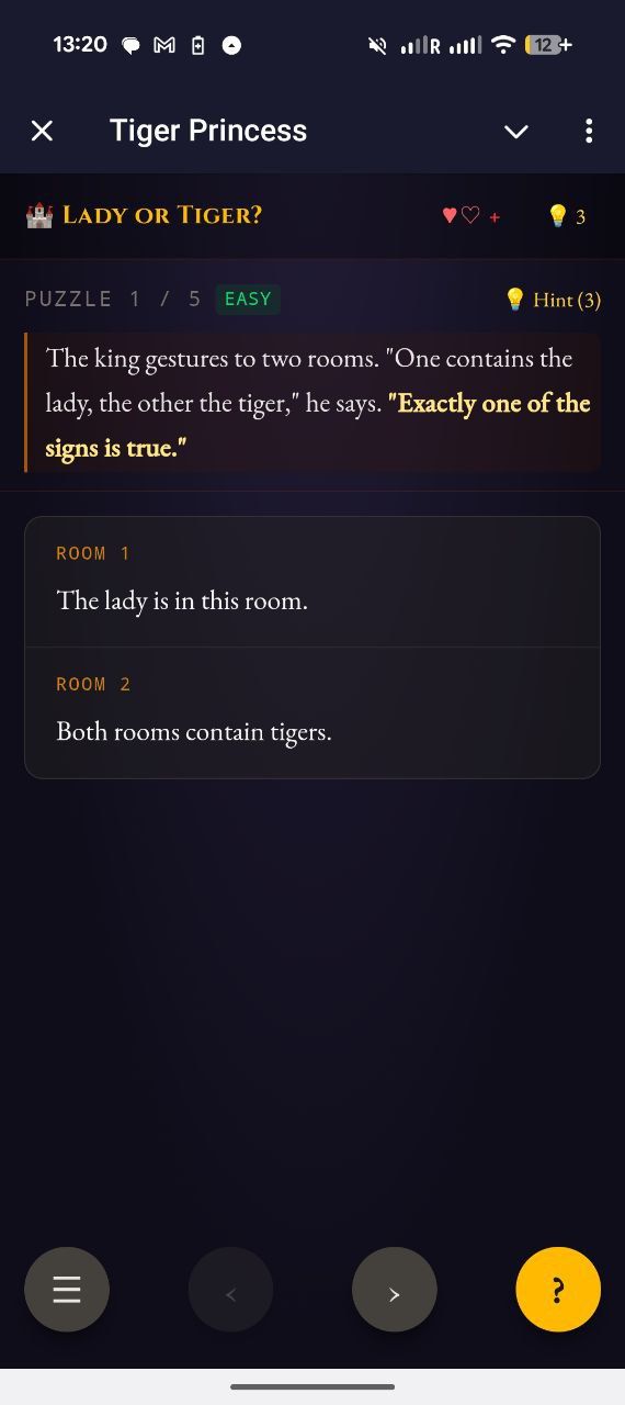 Леди или Тигр? — это логическая игра-головоломка, вдохновленная классическими загадками Рэймонда Смалляна.