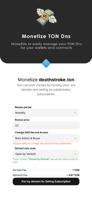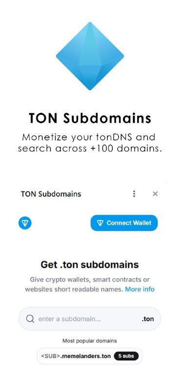 Помимо отдельных доменов .ton, система TON DNS также поддерживает поддомены. Думайте о субдоменах как о папках внутри вашего домена. Если у вас есть example.ton, вы можете создавать поддомены, такие как Wallet.example.ton,social.example.ton или nft.example.ton. Это обеспечивает большую организацию и гибкость в управлении вашим онлайн-присутствием в блокчейне TON.