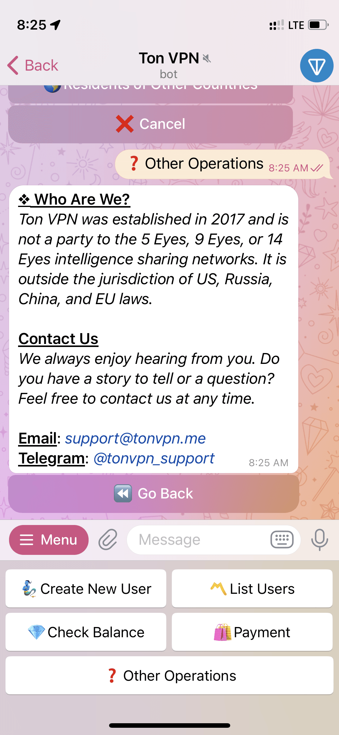 TON VPN Bot — это VPN-сервис на базе Telegram, который позволяет пользователям создавать VPN-клиенты и управлять ими непосредственно в приложении. Он поддерживает несколько протоколов, включая WireGuard, OpenVPN и V2Ray, и предлагает более 5900 серверов в 90 странах. Пользователи могут платить с помощью Toncoin.