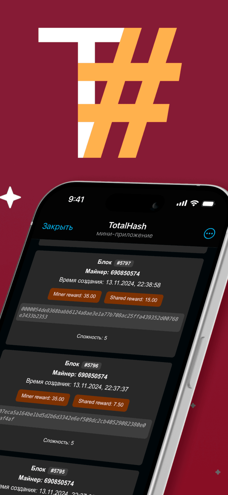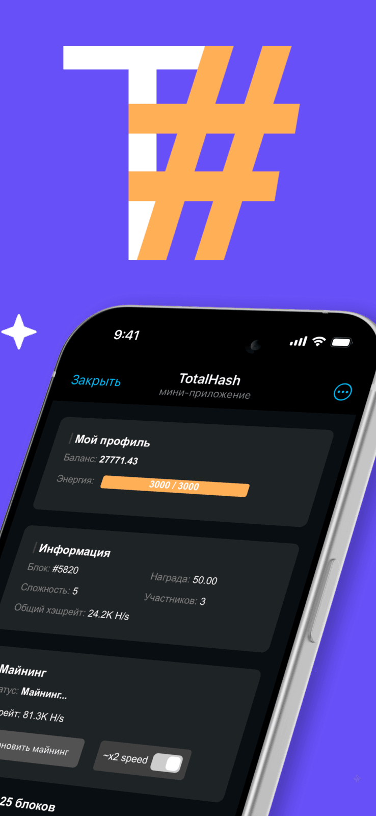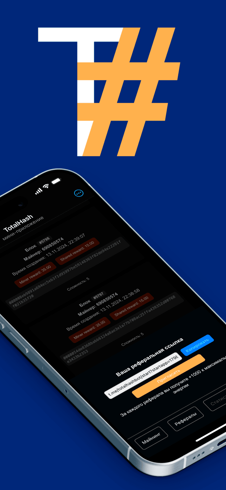 TotalHash — это игра, которая позволяет вам зарабатывать токены, используя вычислительную мощность вашего устройства. Процесс майнинга работает по принципам, аналогичным алгоритму Биткойна.