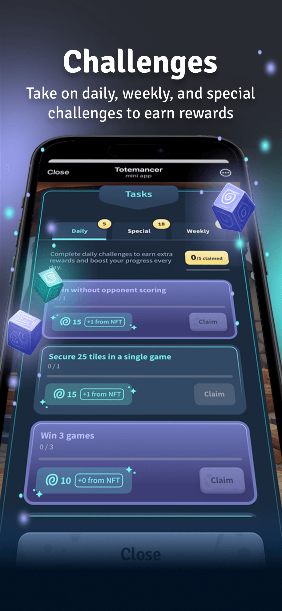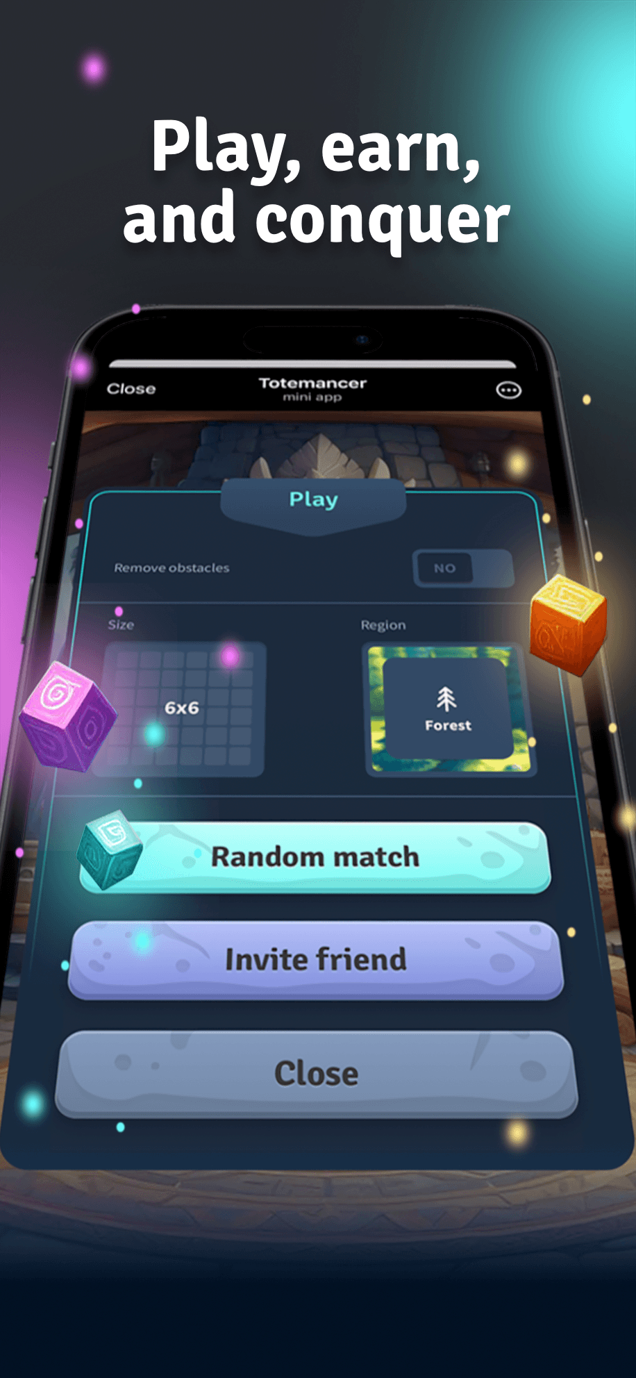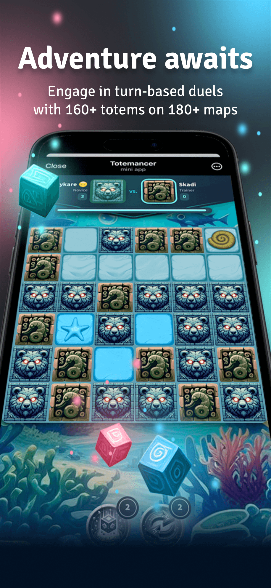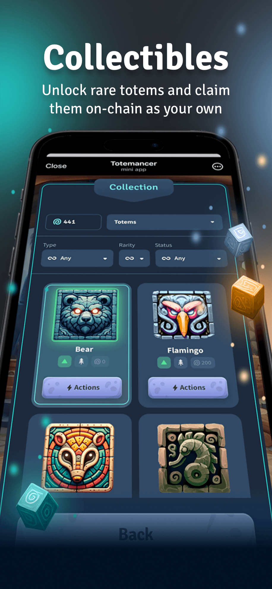Испытайте увлекательную стратегическую игру «играй, чтобы заработать» (P2E), которая сочетает в себе напряженный игровой процесс с возможностью заработать токены или другие вознаграждения в виде токенов. В Totemancer игроки участвуют в захватывающих PvP-сражениях, исследуют различные регионы и выполняют задания, чтобы заработать ману и открыть новые территории. Каждый регион предлагает уникальные тотемы различной редкости, обеспечивающие особые внутриигровые улучшения при превращении в NFT, такие как увеличенный диапазон выпадения TON, увеличение маны, очков опыта и более высокий уровень обнаружения новых тотемов.