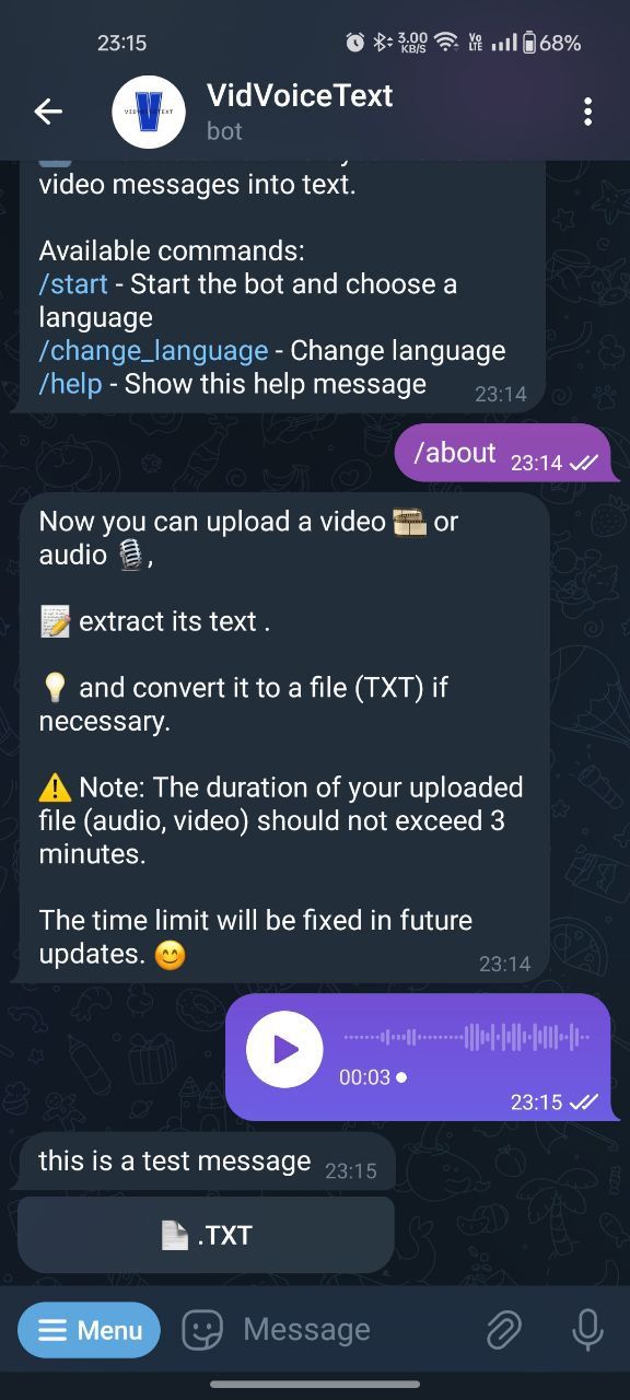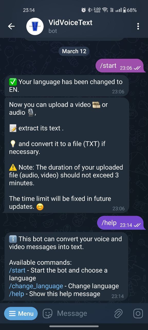 Этот бот дает вам возможность извлекать текст из ваших аудио и видео файлов.