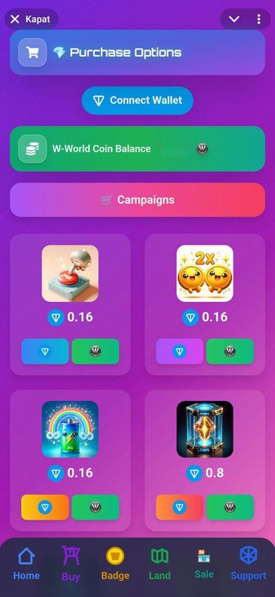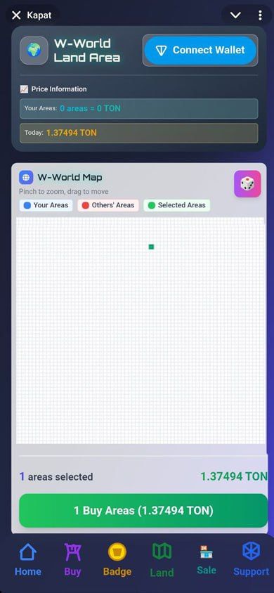 W-World Land — это игра в виртуальном мире, в которой пользователи обменивают цифровые земли, используя TON внутри игры.
