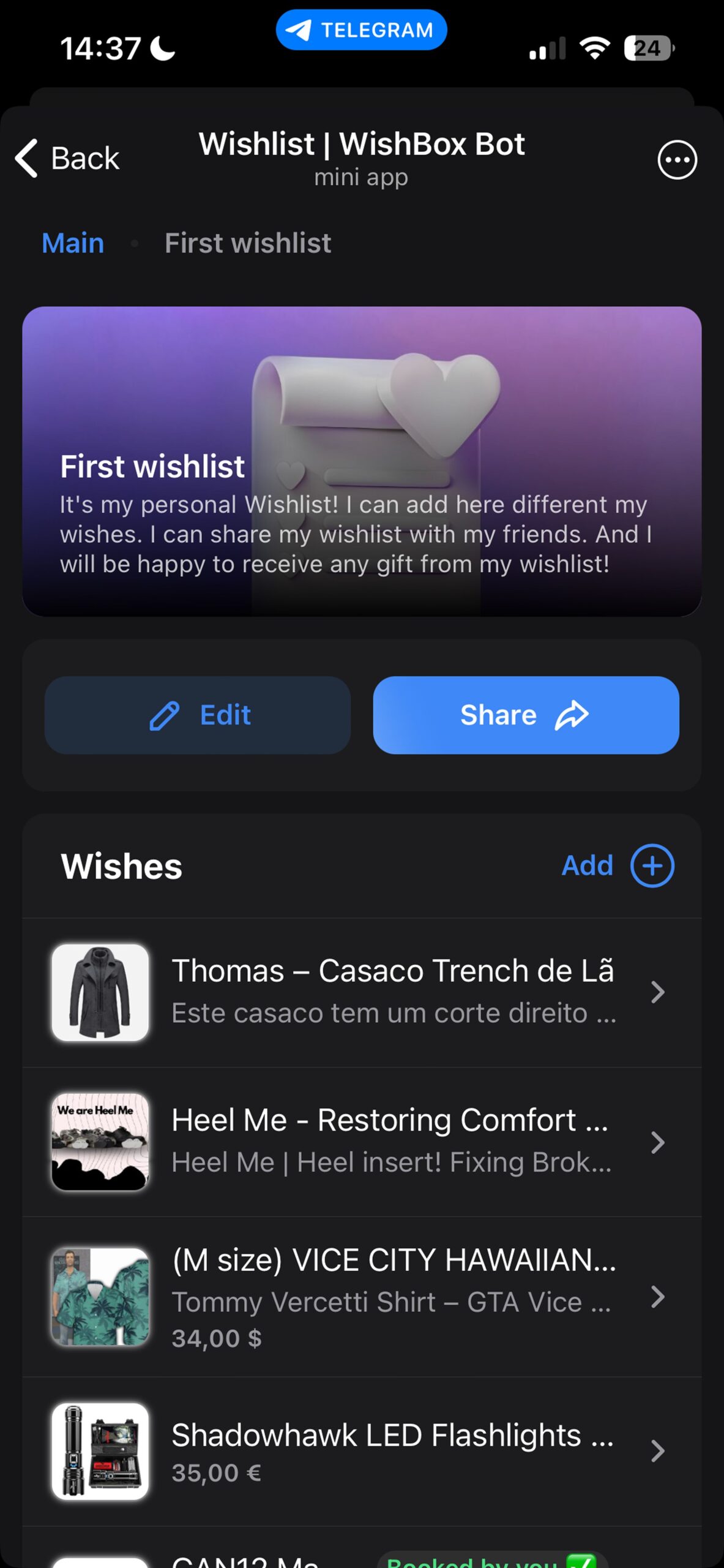 Ваш простой способ собирать, делиться и управлять пожеланиями в Telegram.