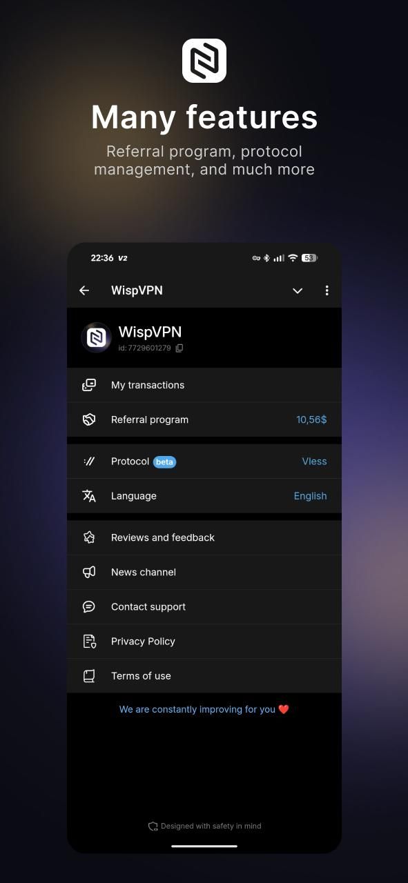 Мини-приложение работает прямо внутри Telegram — удобно, быстро и всегда под рукой. Просто откройте WispVPN, нажмите «Подключить устройство» и наслаждайтесь бесплатным и открытым Интернетом.
